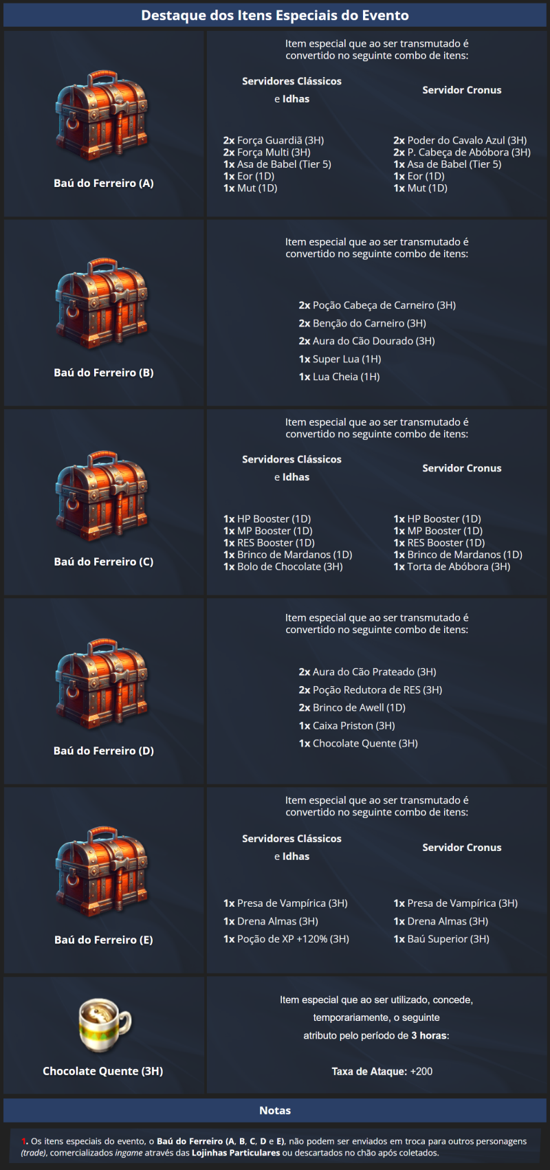 Após o término do evento, os itens especiais